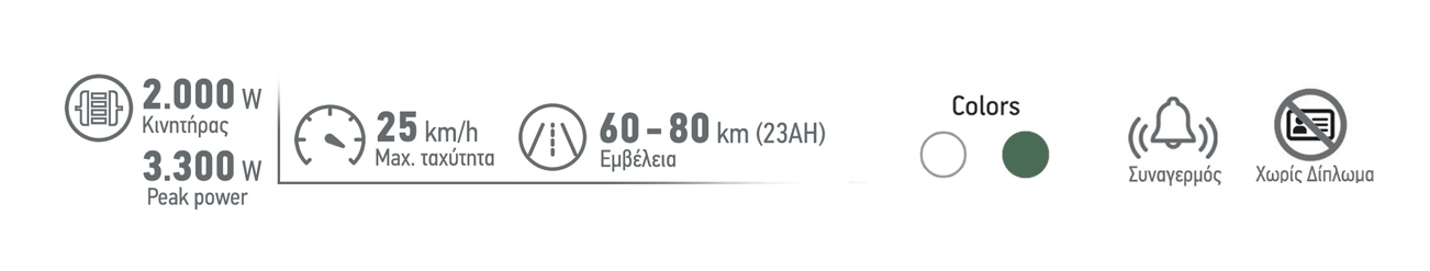Τελική ταχύτητα 25 Km/h _ Κινητήρας 2.000W _ Χωρίς Δίπλωμα