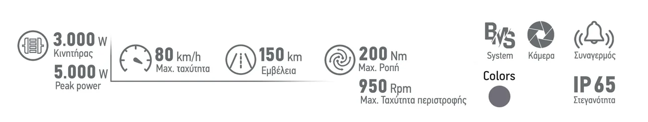 Τελική ταχύτητα 80 Km/h Εμβέλεια_150Km Km/h _ Κινητήρας 3.000W _ Με Δίπλωμα