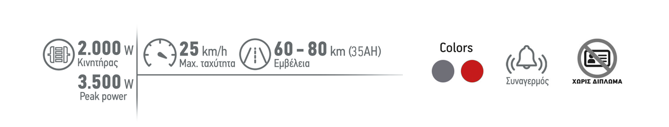 Τελική ταχύτητα 25 Km/h _ Κινητήρας 72V 2.000W _ Χωρίς Δίπλωμα